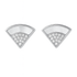 Chic silver fan-shaped stud earrings adorned with sparkling crystals. A modern geometric design that adds elegance and shine to any outfit.
